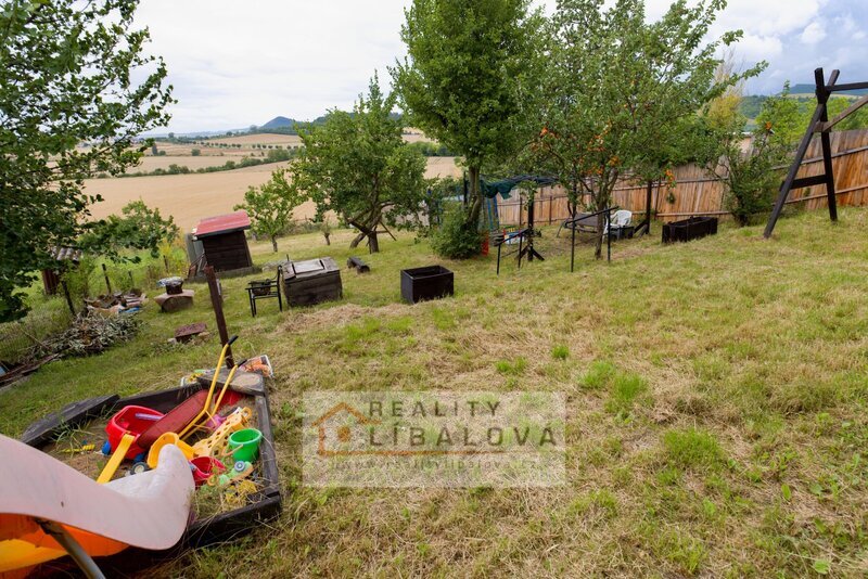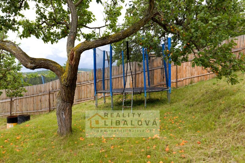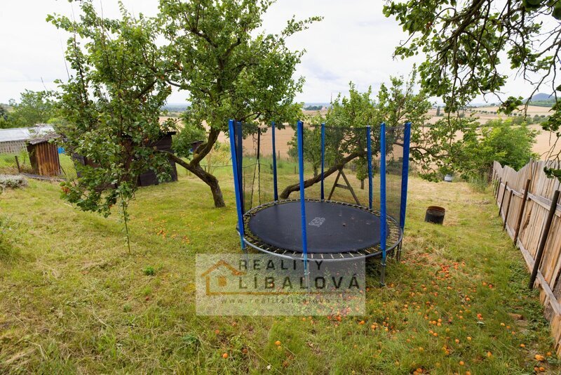 Na zahradě je několik ovocných stromů (meruňka, třešeň, švestka), jinak