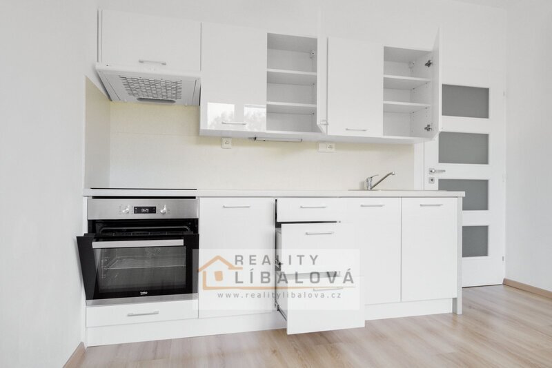 Kuchyňská linka je nová s vestavěnými spotřebiči (elektrická varná