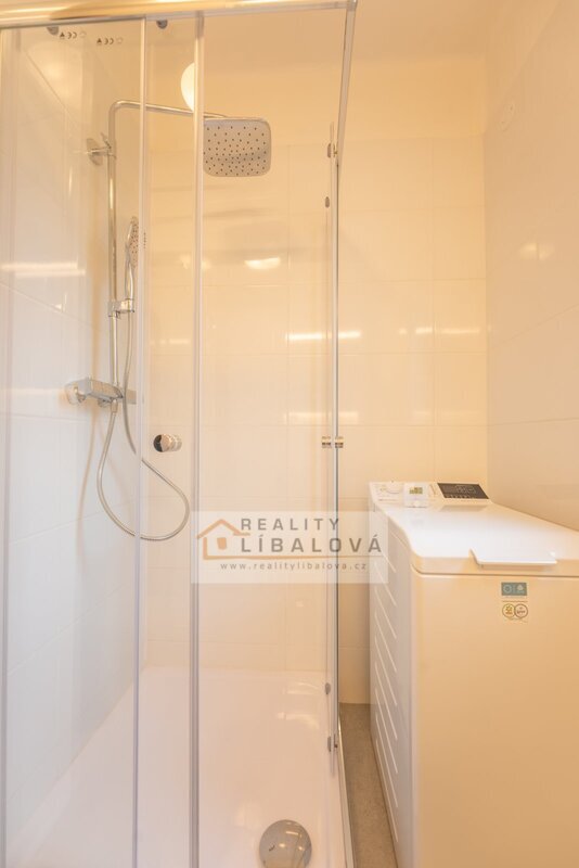 nádobí a indukční sporák s troubou. Koupelna nabízí sprchový kout