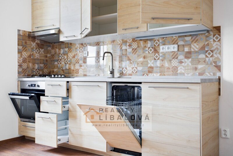 V kuchyni je umístěna nová, velice pěkná kuchyňská linka