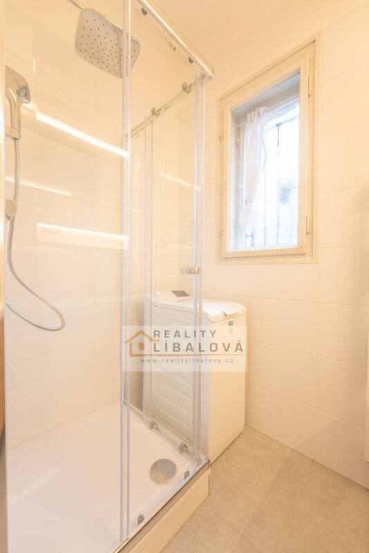 osvětlením a pračku s vrchním plněním. Pokoje jsou neprůchozí a