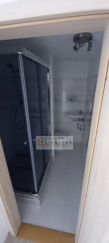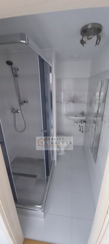 Koupelnové jádro je zděné, je zde umístěn zděný sprchový kout.