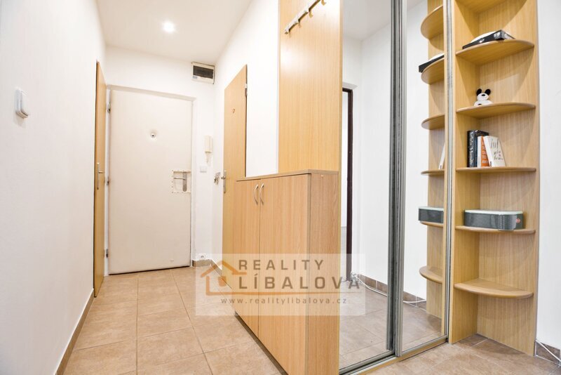 dlažba, v předsíni je umístěna vestavěná skříň, kde je spoustu
